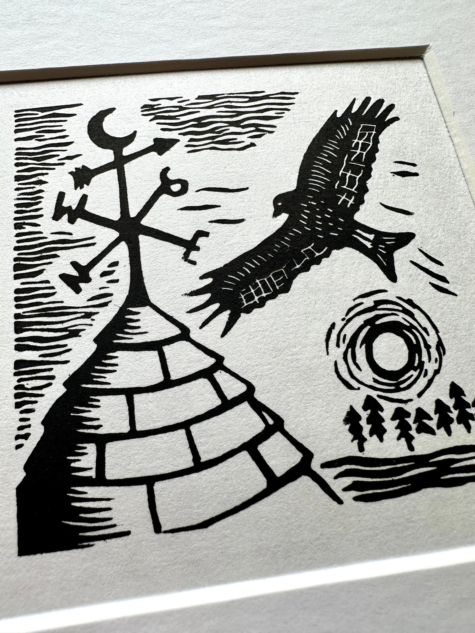 This is a series of mini open edition linocut prints created in 2022. All prints come mounted in an 8 by 8 inch mount (aperture size 4 by 4 inches).